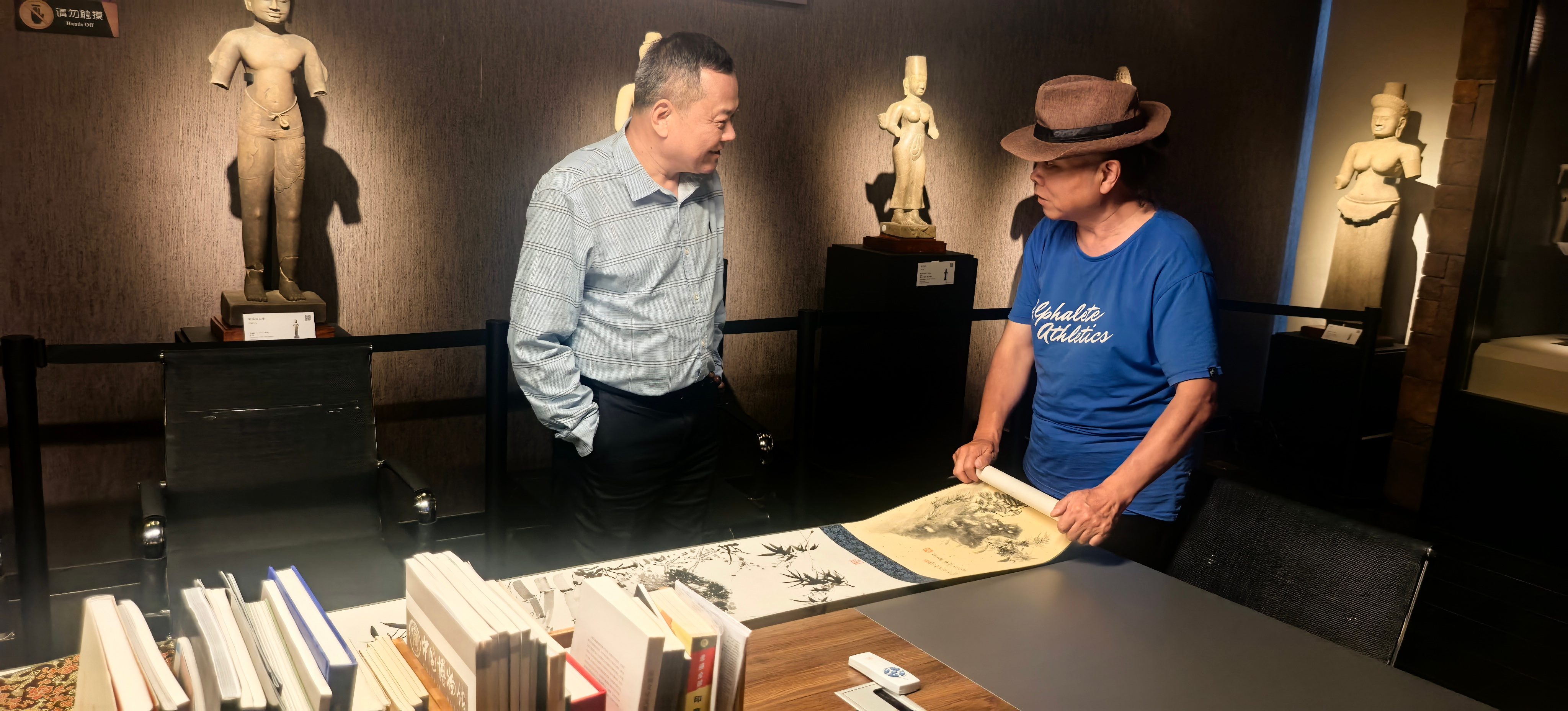 12月19日至20日,南京航空航天大学艺术学院教授、硕士生导师、国家文化产业研究中心舞台美术研究所所长、著名画家王立庆先生莅临深圳市梵亚艺术博物馆,开启了一场跨越千年的艺术对话——从南亚、东南亚古代佛教艺术珍品到水墨丹青的即兴创作,他以笔墨为媒,在文物与现代艺术间架起了一座流动的桥梁。
