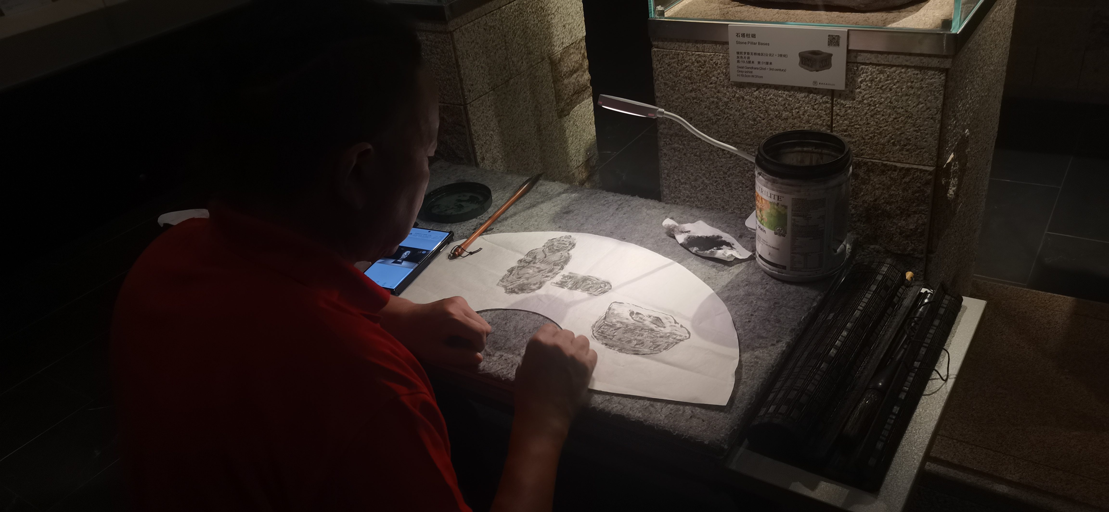 在梵亚的两日,王立庆的创作始终围绕馆藏犍陀罗主题浮雕展开。面对那些融合了希腊雕塑肌体美感与古印度佛教精神的造像,他时而凝神端详,时而挥毫点染——墨色皴擦处,佛陀垂目沉思的面容渐次清晰;淡彩晕染间,菩萨衣袂飘举的动态呼之欲出……